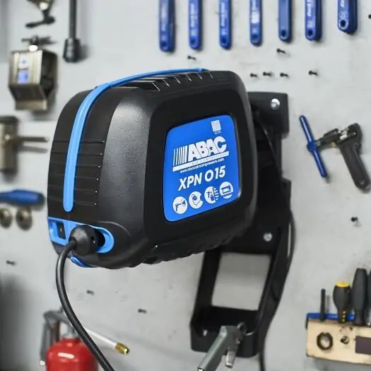 • Profesionalni razred. Zidno telo vazdušnog kompresora ABAC KSPN O15 sadrži potpuno zatvorenu pumpu bez rezervoara sa koturom za crevo koji se može izvlačiti do 10 m.