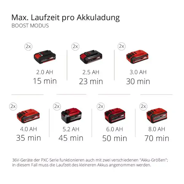 • Dizajnirane kao član porodice visokih performansi Power X-Change, sve punjive baterije iz sistemske serije mogu se fleksibilno i bez ograničenja koristiti u proizvodima za obradu i baštu iz sistemske serije. Za ispravno podešavanje postoji ECO sklopka sa dve postavke: bilo ekonomični režim sa smanjenim pritiskom isporuke ili punom snagom.