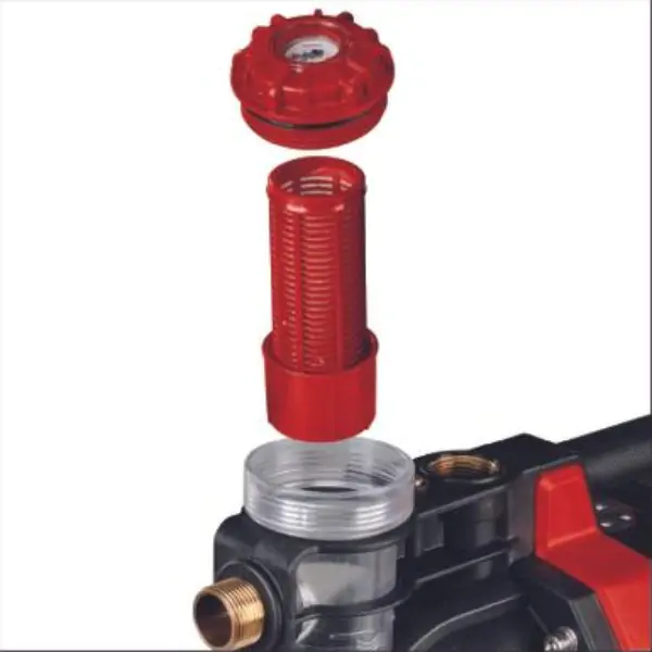 • Da bi se zaštitila od kontaminacije, pumpa je opremljena predfilterom. Ovo je okruženo providnim kućištem, koje omogućava da se u svakom trenutku otkrije da li je pumpa dovoljno napunjena vodom i da li je filter prljav i da li ga treba očistiti.