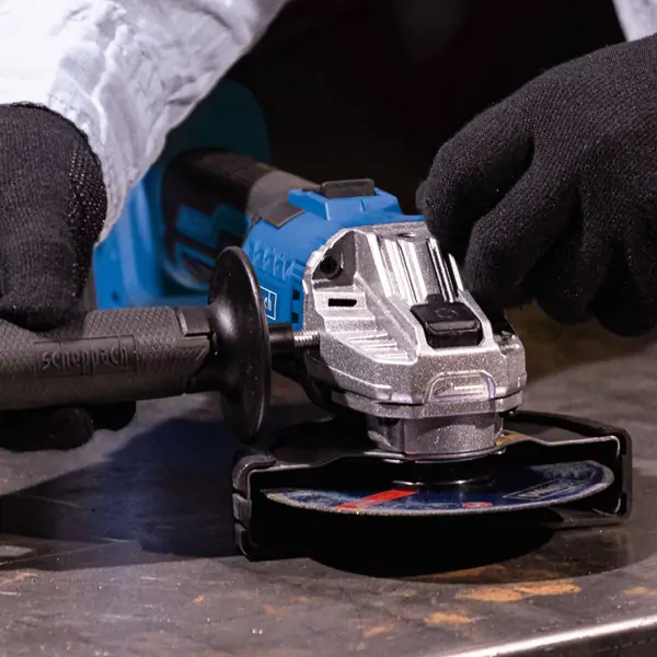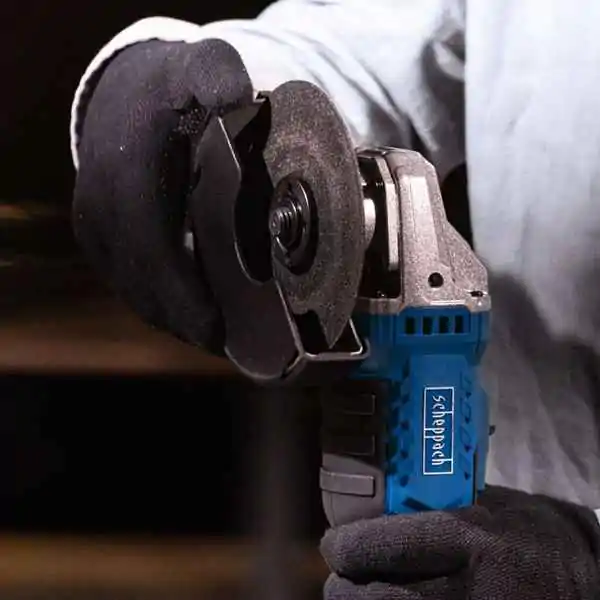 Akumulatorska ugaona brusilica C-AG125-X iz Scheppacha idealan je alat za rezanje, brušenje, skidanje ivica i poliranje. Zahvaljujući funkcijam ...