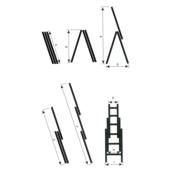 • Aluminijumske merdevine koje se sastoje iz tri dela, sa različitim mogućnostima kombinovanja.