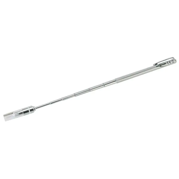 • Telescopski mehanizam se podešava od 17 do 68 cm, pa lako dosežete duboke i tesne prostore. Na vrhu se nalazi veoma jak magnet koji nosi do 1 kg, što je dovoljno za većinu sitnog metalnog pribora (šrafovi, burgije, bitovi, nastavci, ključevi). LED svetlo obasjava tačno mesto hvata, pa izbegavate „slepo“ manevrisanje i grebanje delikatnih površina. Tanki prečnik 11 mm omogućava prolazak kroz otvore i zazore, dok masa od svega 36 g čini alat uvek spremnim u džepu bluza, koferu s alatom ili pretincu automobila.