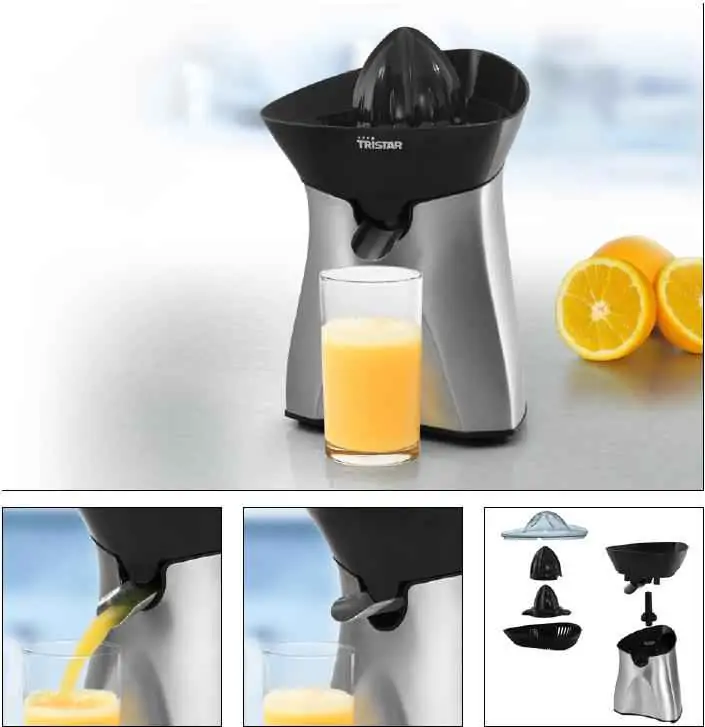 • Sokovnik za citruse od nerđajućeg čelika sa snažnim motorom! Ima providnu zaštitu od prašine i dve kupe za limun i pomorandže različitih veličina.