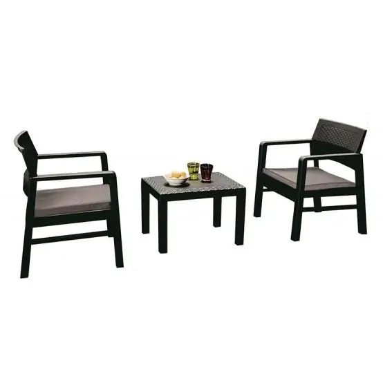 • Fotelje su udobne i pružaju vam mesto za opuštanje na terasi, balkonu ili u dvorištu. Sivi jastuci dodaju udobnost i estetiku, čineći sedenje još prijatnijim. Ovaj set je idealan za opuštanje uz knjigu, šolju kafe ili razgovor sa prijateljima.