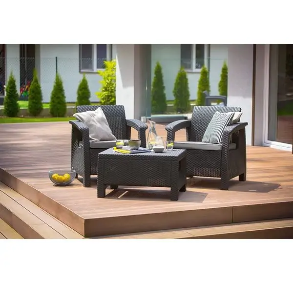 Baštenski set Emilly Patio grafitElegantni baštenski set "Emilly Patio" u grafit nijansi, sa dve fotelje, jednim dvosedom i st ...