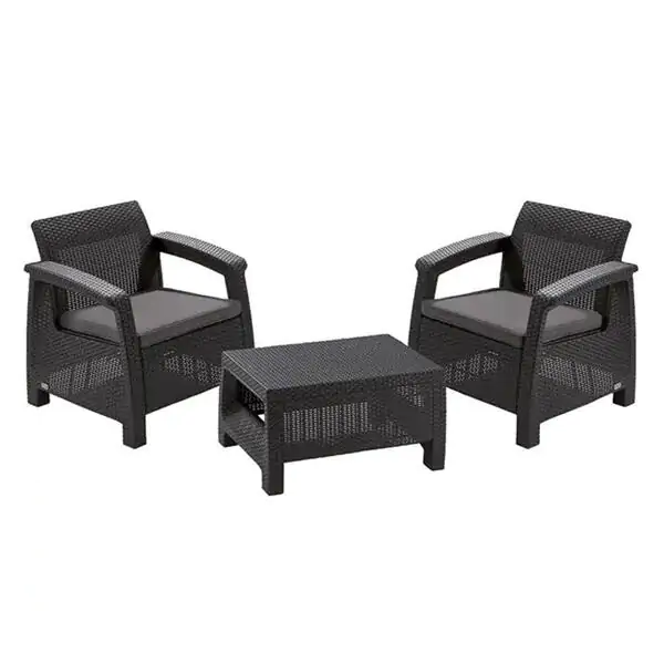 Balkonski set Rosario grafitKlasični i funkcionalni set sastoji se od dva fotelje i stolaIzrađen od polipropilenske plastikeJednostavan sistem za skla ...