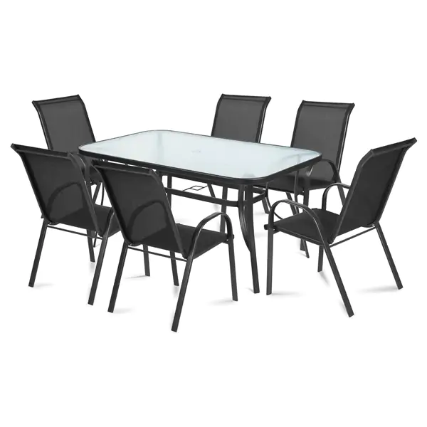 Baštenski set sto sa 6 stolica ElafonisosBaštenska Garnitura sa 6 Stolica i Stolom sa crnim Kaljenim StaklomBaštenska garnitura u ...