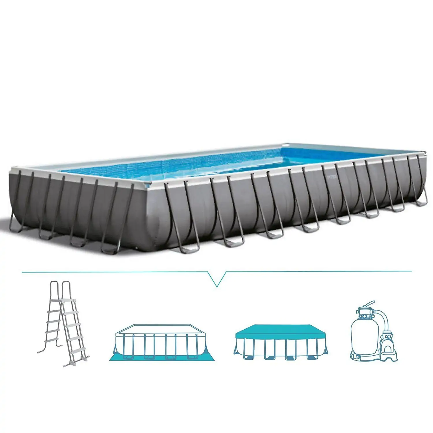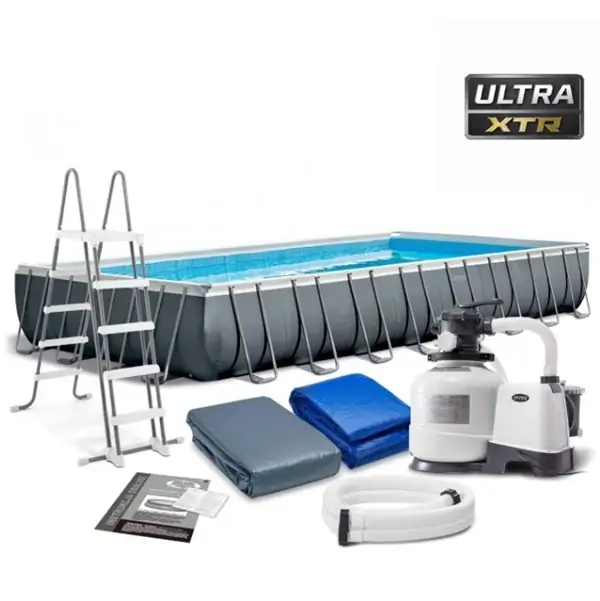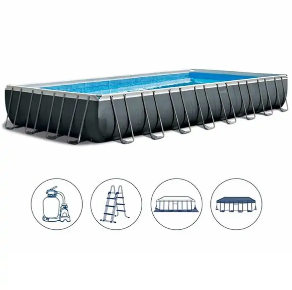 • Ultra XTR Frame bazen od 9.75 x 4.88 x 1.32 metra, proizveden od strane INTEX-a, predstavlja vrhunski proizvod koji kombinuje estetsku eleganciju sa visokim performansama. Sa tamno sivom bojom i pravougaonim oblikom, ovaj bazen dodaje luksuzan pečat svakom dvorištu.