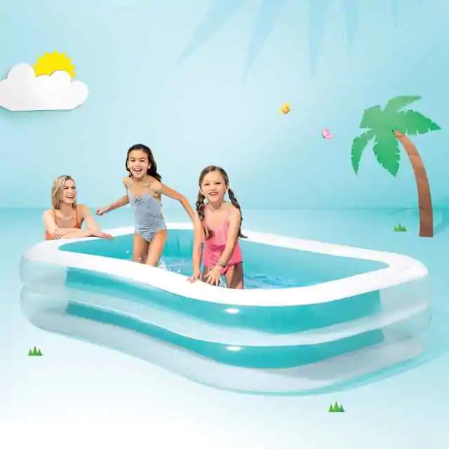 • Zahvaljujući jednostavnom dizajnu na naduvavanje, bazen se može lako i brzo postaviti u dvorištu, omogućavajući vam da maksimalno iskoristite sunčane dane bez dugotrajnih priprema.
