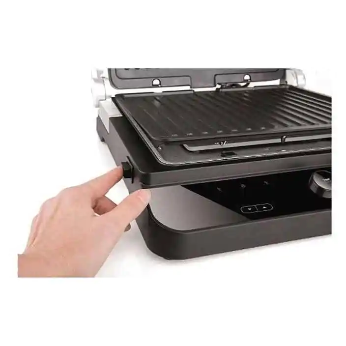 • Nelepljiva plutajuća ploča se prilagođava debljini hrane, što omogućava ravnomerno pečenje bez lepljenja. Pored toga, uređaj dolazi sa dodatnom ravnom pločom koja vam omogućava da ga koristite kao klasični roštilj. Završna obrada od nerđajućeg čelika otporna je na otiske prstiju, što osigurava da vaš toster uvek izgleda čisto i elegantno.