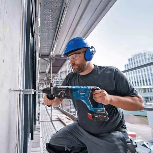 • GBH 18V-28 DC Professional je snažan elektro-pneumatski čekić za bušenje sa D-drškom namenjen profesionalnim korisnicima koji zahtevaju visoku efikasnost i preciznost. Opremljen motorom bez četkica, alat pruža energiju udara od 3,4 J uz optimizovani odnos snage i težine od 1,1 J/kg, što omogućava lako i brzo bušenje u betonu, kamenu i zidovima. Dizajn D-drške omogućava ergonomično držanje i idealan je za vertikalno i nadole bušenje, čime se povećava kontrola i komfor pri radu. Za rad u prašnjavim uslovima, GBH 18V-28 DC može se povezati sa laganim usisivačem GDE 28 D Professional, koji poseduju mehanizam za čišćenje filtera i održava stalnu usisnu snagu. Alat je opremljen funkcijama Vibration Control i KickBack Control, koje momentalno isključuju čekić u slučaju zaglavljene burgije ili iznenadnog gubitka kontrole, čime se smanjuje rizik od povreda šake i ruke. GBH 18V-28 DC Professional je kompatibilan sa svim Bosch Professional 18V akumulatorima i punjačima, kao i sa AMPShare sistemom akumulatora više brendova, što omogućava fleksibilnu upotrebu i maksimalnu snagu pri radu. Dodatno, alat ima praktičnu kuku za kačenje tokom pauza u radu, što povećava sigurnost i praktičnost na terenu.