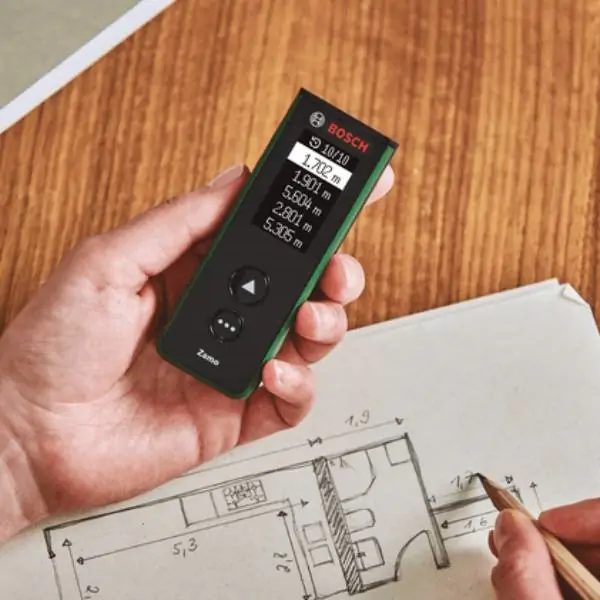 • Pomoću Zamo laserskog daljinomera lako se određuju dužine prostorija, visine rasporeda nameštaja i zadovoljavaju zahtevi postavljanja podova ili farbanja tokom renoviranja, pri čemu alat precizno meri rastojanja do 25 metara jednim pritiskom na dugme; dodatno izračunava kvadratne metre što olakšava procenu potrebnih količina tapeta, podnih obloga i drugih materijala, dok tri zasebna nastavka – linijski za nivelisanje slika i predmeta, točkasti za zakrivljene i neravne površine i trakasti od 1,5 metra za merenje samostojećih objekata i obima – omogućavaju praktičnu i svestranu upotrebu; Zamo pamti do 10 najnovijih vrednosti, eliminišući potrebu za zapisivanjem, a integrisani USB-C® interfejs omogućava jednostavno punjenje i ažuriranje softvera, čineći uređaj uvek spremnim za rad.
