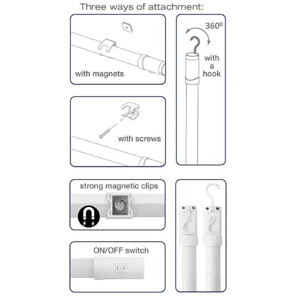 • Podrzava 3 nacina montaze: srafljenje na ravnu povrsinu, kacenje na kuku i postavljanje na metalnu povrsinu pomocu magneta