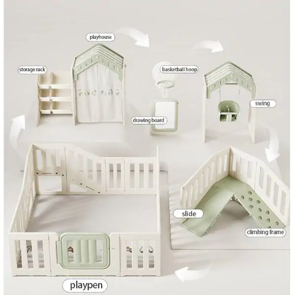 • Ogradica je jednostavna za sklapanje i održavanje, moderan dizajn omogućava kompatibilnost sa različitim enterijerima i eksterijerima, a podloga nije deo seta, što daje fleksibilnost u odabiru površine. “Inovativni 7 u 1” osigurava sigurno, zabavno i edukativno okruženje, podstičući zdrav razvoj, aktivnost i kreativnost deteta u svakodnevnoj igri.