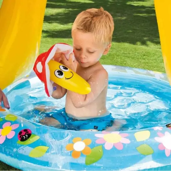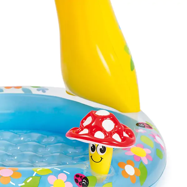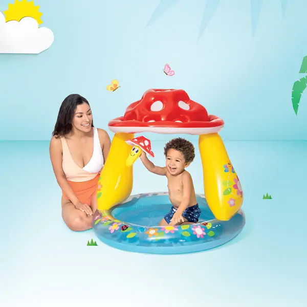 • Jedna od izuzetnih karakteristika ovog bazena je zaštita od sunca u obliku pečurke. Ovo je veoma važno kako bi se osigurala zaštita od direktnih sunčevih zraka tokom vodenih aktivnosti. Deca će moći da uživaju u igri i hladu, što je posebno važno tokom vrelih letnjih dana.
