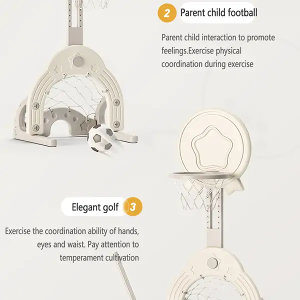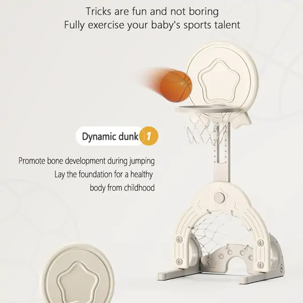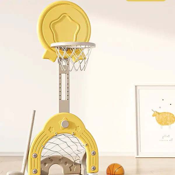 • Dečiji multifunkcionalni koš Žuta Zvezda je savršen poklon za svakog malog sportistu, jer kombinuje zabavu, igru i fizičku aktivnost u jednom šarmantnom i edukativnom setu. Sa podesivim visinskim okvirom od 62 do 117 cm (ukupna visina 150 cm), koš raste zajedno sa detetom, omogućavajući svakodnevni izazov i razvoj motoričkih veština. Set uključuje koš u obliku zvezde za šutiranje i igru, golove za fudbal koji podstiču timski duh i loptu za preciznost, kao i golf set sa štapom i loptom za mirniju i fokusiranu igru. Izrađen je od visokokvalitetnog, sigurnog HDPE materijala koji se koristi u prehrambenoj industriji, garantujući dugotrajnost, stabilnost i potpunu bezbednost. Fleksibilno postolje koje se puni vodom ili peskom osigurava stabilnost tokom igre, dok dimenzije od 150 × 48,5 × 54,5 cm omogućavaju igranje u stanu, kući, dvorištu ili na terasi. Ovaj multifunkcionalni set unosi radost, maštu i zdravu sportsku aktivnost u svakodnevicu vašeg deteta, čineći svaki trenutak igre nezaboravnim i podstičući razvoj koordinacije, preciznosti i timskog duha.