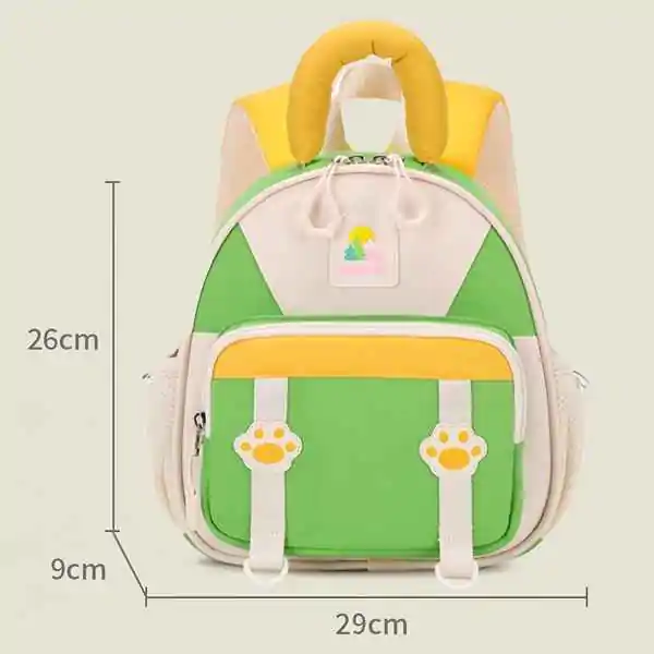 • Dečiji ranac Ruipai “Paw” dizajn u zelenoj boji idealan je izbor za mališane koji vole životinje i nežne pastelne tonove. Kombinacija zelene, žute i krem nijanse, uz simpatične šapice na prednjem delu, čini ga privlačnim i veselim dodatkom za vrtić ili šetnju. Izrađen je od kvalitetnog materijala otpornog na vlagu i habanje, pa se lako održava i dugo ostaje kao nov. Prostrani glavni džep omogućava da se spakuju sve neophodne stvari, dok prednji džep služi za sitnice koje treba da budu pri ruci, a bočni mrežasti džepovi savršeni su za flašicu vode. Udobnost je obezbeđena širokim, podstavljenim naramenicama i mekanom ručkom, pa je nošenje lagano i prijatno čak i za najmlađe. Dimenzije ranca 29 × 29 × 9 cm čine ga praktičnim za decu uzrasta od 2 do 6 godina, a njegova raznovrsnost ga čini odličnim izborom za vrtić, kraće izlete ili poklon koji će svakog mališana obradovati.
