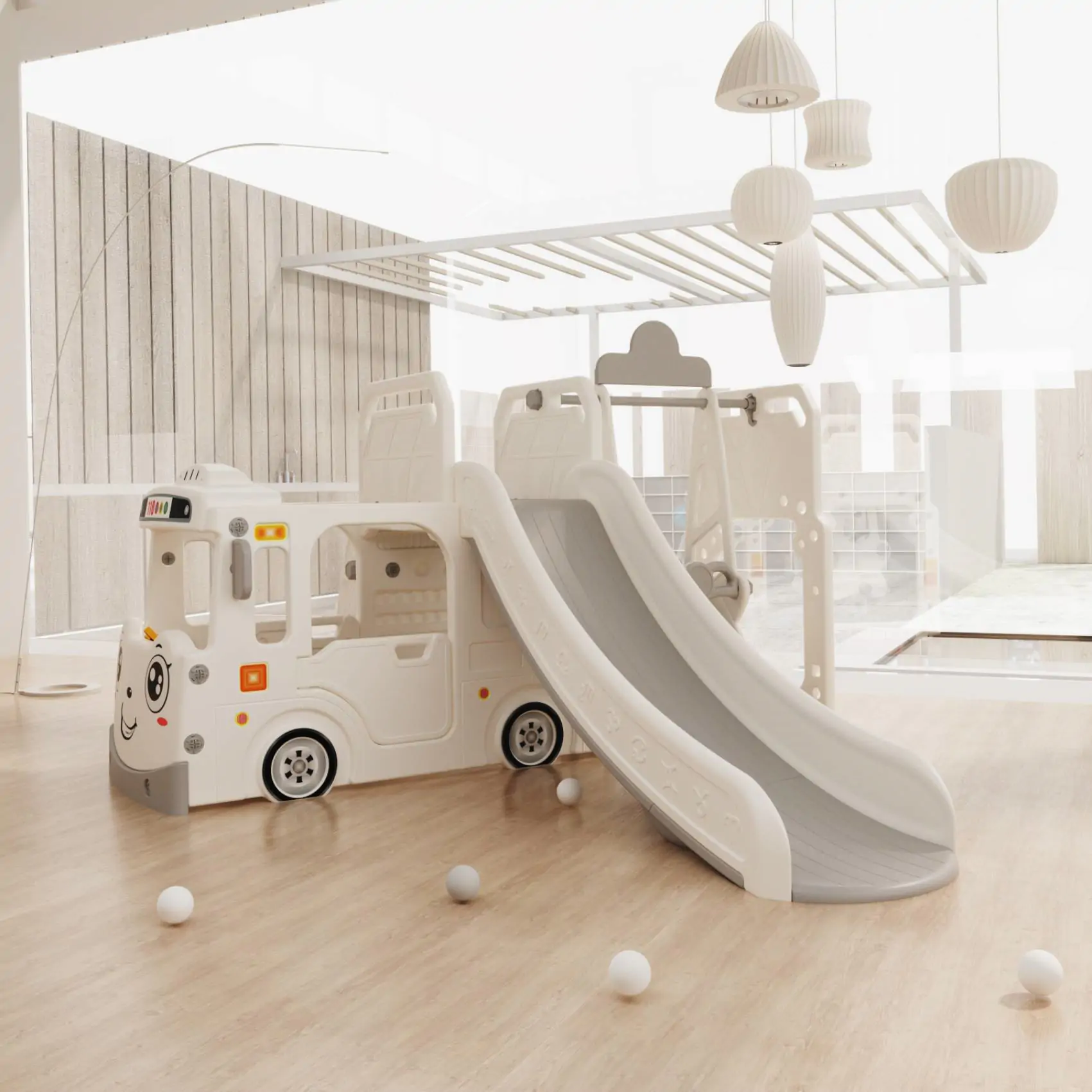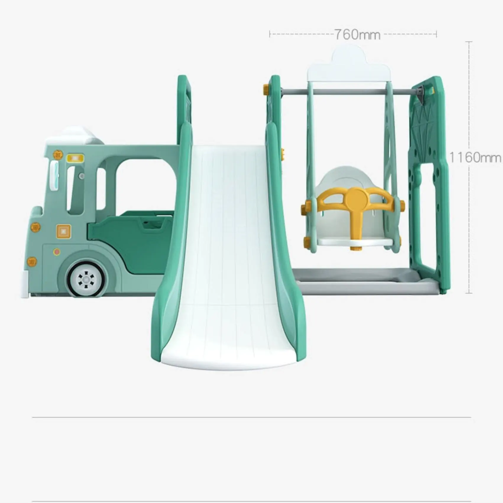 • Struktura igrališta je fleksibilna i jednostavna za sklapanje, što omogućava prilagođavanje ravnoj površini bilo u zatvorenom prostoru, poput dnevne ili dečje sobe, ili na otvorenom u dvorištu ili igraonici. Set uključuje tobogan, ljuljašku, klackalicu i vozić, sa nosivošću do 25 kg na ljuljašci i 40 kg na toboganu, pružajući sigurnu igru više mališana istovremeno i podstičući razvoj socijalnih veština, ravnoteže i koordinacije.