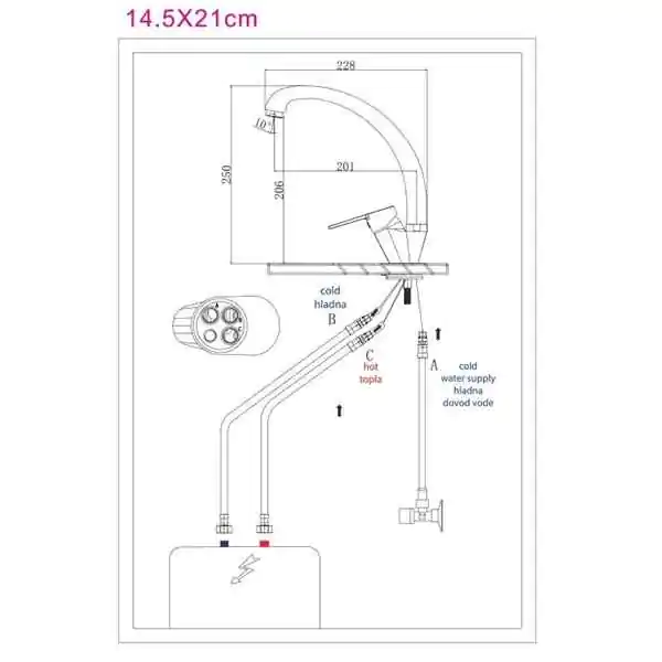 • Jednoručna stojeća slavina za sudoperu, što znači da se može lako postaviti na radnu površinu sudopera, a jedna ručica omogućava jednostavno podešavanje protoka i temperature vode.