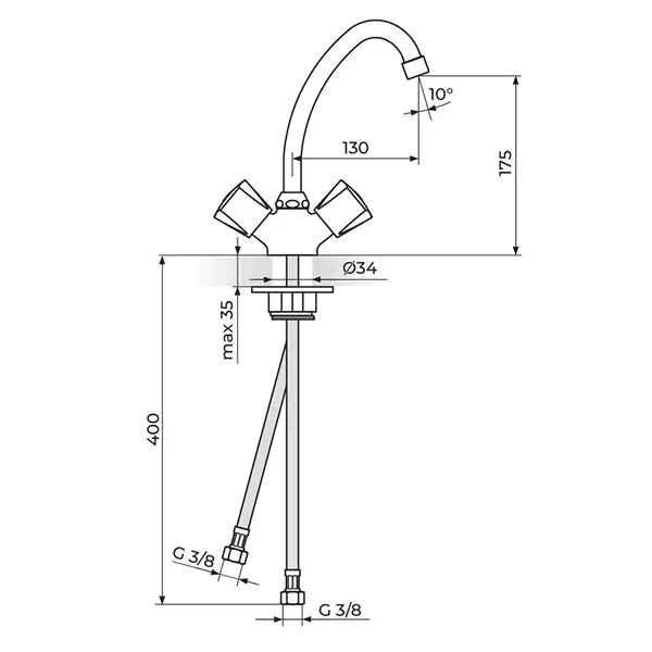 Dvoručna slavina - baterija za sudoperu - lavabo stojeća - kraći izliv Keramic KK23013 ROSAN