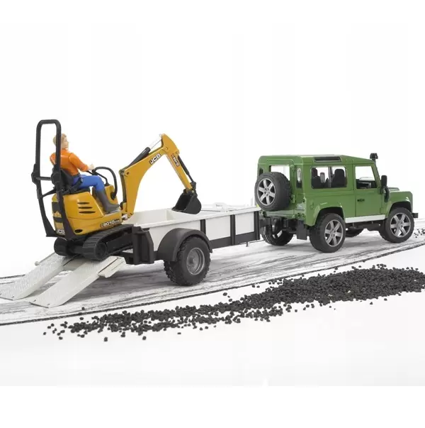 Džip Land Rover sa prikolicom i JCB mini bagerom i figurom BRUDER
