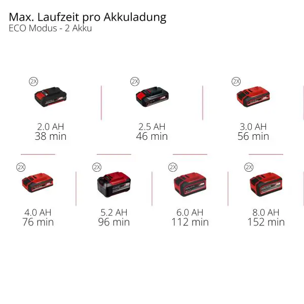 • Pumpa radi sa baterijom od 18 V. Zahvaljujući tehnologiji Double Runtime i dva integrisana slota za baterije, pumpa se takođe može opremiti sa dve baterije za duže vreme rada. Ako je jedna baterija prazna, napajanje se automatski prebacuje na drugu, punu bateriju. Kapacitet dve baterije se može videti na LED displeju nivoa napunjenosti u bilo kom trenutku.