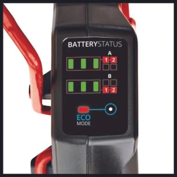 • Inteligentna kontrola sa dve brzine omogućava vam prilagođavanje snage kako bi odgovarala konkretnom zadatku. Tehnologija Double Twin Pack od 36 V koristi četiri baterije od 18 V, što omogućava produženu upotrebu bez iritantnih kablova za napajanje. ECO režim omogućava još duže vreme rada, dok indikator statusa baterije na upravljaču omogućava praćenje nivoa napunjenosti u svakom trenutku.