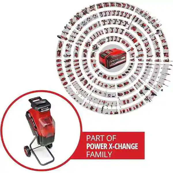 • Snažne Performanse: Ova seckalica je deo Einhell Power X-Change porodice, što znači da se može kombinovati sa svim baterijama i punjačima iz istog sistema. Sa Twin-Pack tehnologijom koja kombinuje snagu dve baterije od 18 V, dobijate maksimalne performanse. Preporučuje se korišćenje baterija od 5,2 Ah ili većih za optimalne rezultate.