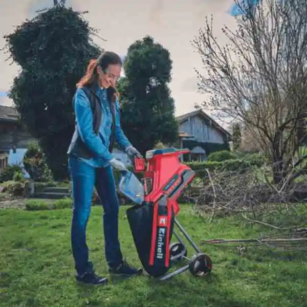 • Praktičan Dizajn: Opremljena je velikim otvorom levka i potiskivačem, što omogućava lako i bezbedno ubacivanje grana sa maksimalnim prečnikom od 25 mm. Graničnik je uvek pri ruci zahvaljujući integrisanom držaču. Uključena visokokvalitetna torba zapremine 55 litara olakšava sakupljanje i odlaganje piljevine.