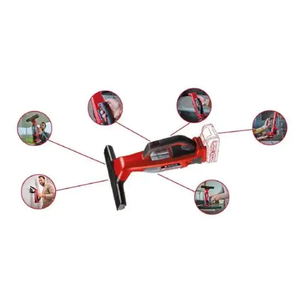 • Komplet teleskopskih šipki za čišćenje visokih prozora, set mlaznica za čišćenje uskih i velikih staklenih površina i zaštitni poklopac baterije su takođe dostupni zasebno kao praktični dodaci za Einhell akumulatorski čistač prozora BRILLIANTO.