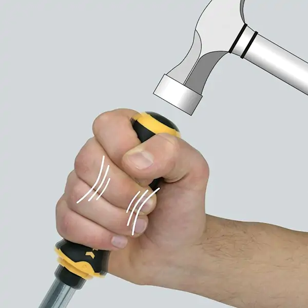 • Ergonomski oblik drške sa ćelijama od fleksibilne plastike odgovara idealnom uglu rotacije ruku i doprinosi pravilnoj raspodeli aksijalne sile.