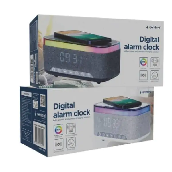 • Unesite praktičnost, stil i funkcionalnost u vašu spavaću sobu uz Gembird digitalni budilnik. Kombinujući alarm, bežični zvučnik, FM radio, bežični punjač i RGB noćno svetlo, ovaj uređaj zadovoljava sve vaše potrebe za udobno i moderno okruženje.