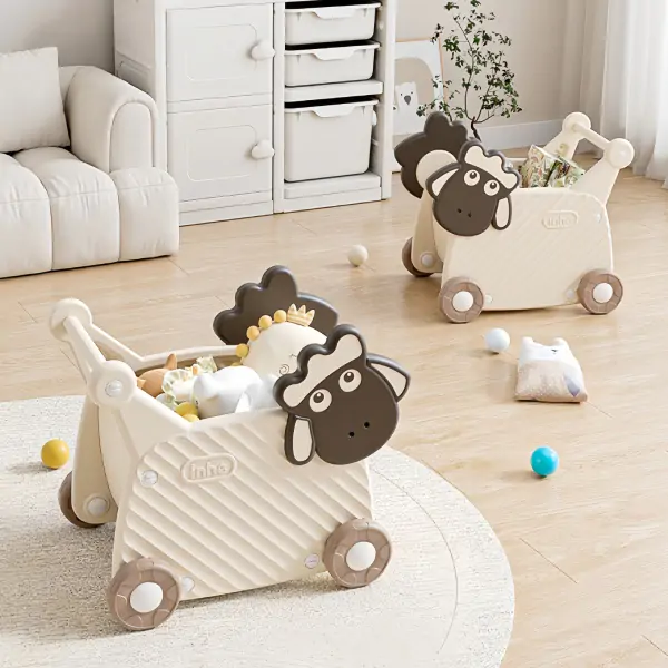 • Guralica i kolica za igračke „Ovčica 2u1“ savršen su izbor za prve korake vašeg mališana, spajajući stabilnu guralicu i praktična kolica u jednom preslatkom proizvodu koji podstiče sigurnu, kreativnu i samostalnu igru. Izrađena od visokokvalitetnog, netoksičnog HDPE materijala koji se koristi u prehrambenoj industriji, „Ovčica 2u1“ pruža maksimalnu bezbednost, izdržljivost i otpornost, dok zaobljene ivice, neklizajući točkovi i ergonomska ručka omogućavaju udobno i stabilno guranje po svim podlogama. Prostrani odeljci za igračke čine je idealnom za nošenje plišanih drugara i kočkica, podstičući motoričke veštine i maštovitu igru. Njena nežna kombinacija bež i braon tonova, uz šarmantan motiv ovčice, unosi toplinu u svaki prostor, čineći je podjednako privlačnom i dečacima i devojčicama. Uz „Ovčicu 2u1“ svaki korak postaje sigurna avantura, a svaki dan ispunjen osmesima i novim otkrićima.