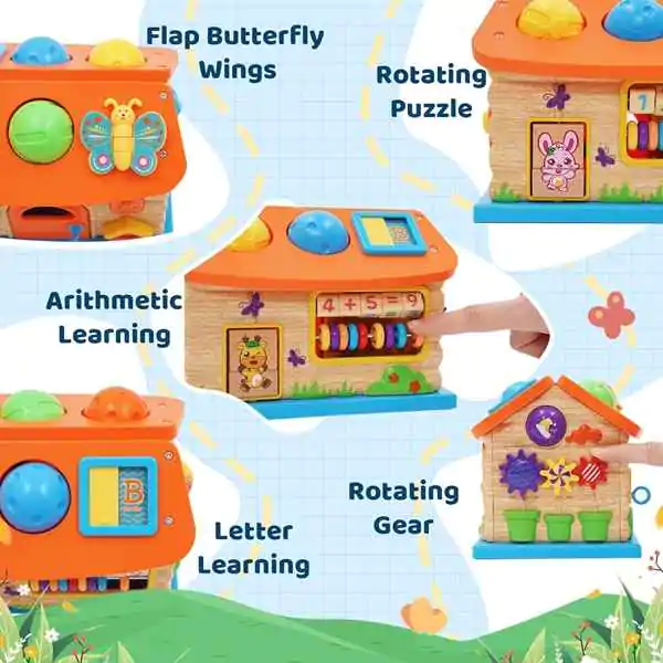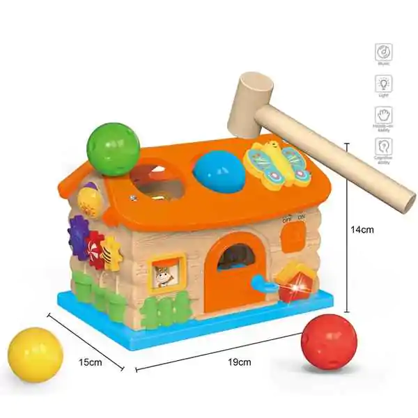 • Ark miido igračka za udaranje predstavlja inovativnu i edukativnu igračku dizajniranu da stimuliše rast i razvoj veština kod dece kroz igru. Ova multifunkcionalna igračka, inspirisana Montesori metodom, idealna je za dečake i devojčice i nudi bogatstvo aktivnosti koje podstiču kognitivni razvoj, uključujući prepoznavanje boja, slova, brojanje perli i razumevanje mehanike kroz igru sa zupčanicima.