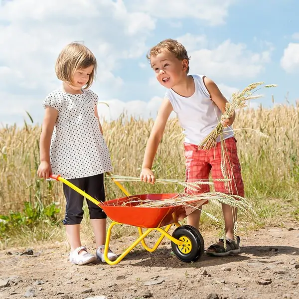 Kolica gradjevinska za decu žuta Rolly ToysStarost: 2.5 + +sa metalnim ramom od cevivrlo čvrsto plastično koritoanti-klizajuće drškeopter ...