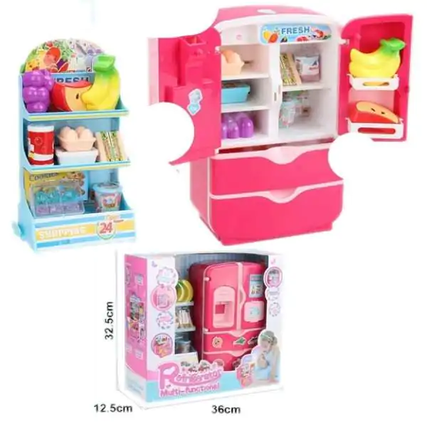 • Ovaj preslatki roze frižider sa namirnicama savršen je dodatak svakoj dečijoj kuhinji, pružajući deci mogućnost da se upuste u igru uloga
