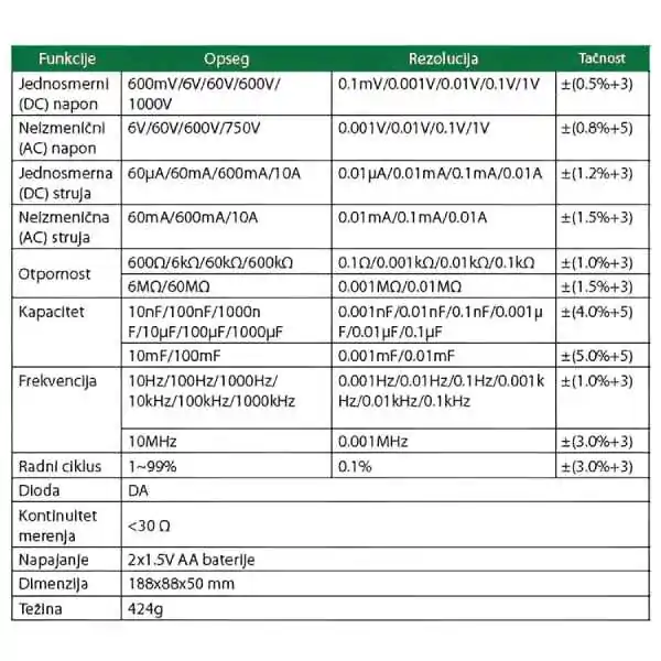 • Tačnost: ±(0,8%+5)