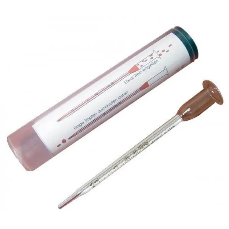 • Vinomer radi na principu različite kapilarne snage vina u zavisnosti od sadržaja alkohola. Sastoji se od kapilarne cevi i levka koji služi kao podnožje tokom rada. Ovaj instrument je idealan za ljubitelje vina koji žele brzo i jednostavno da provere procenat alkohola u svom vinu.