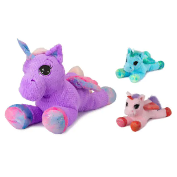Dostupan u tri prelepe boje – ljubičasta, plava i roze, ovaj jednorog unosi šarm i radost u svaku dečiju sobu. Magični dizajn i bajkoviti detalji podstiču kreativnost i beskrajne avanture u svetu snova, čineći ga savršenim poklonom za sve ljubitelje jednoroga i plišanih igračaka.