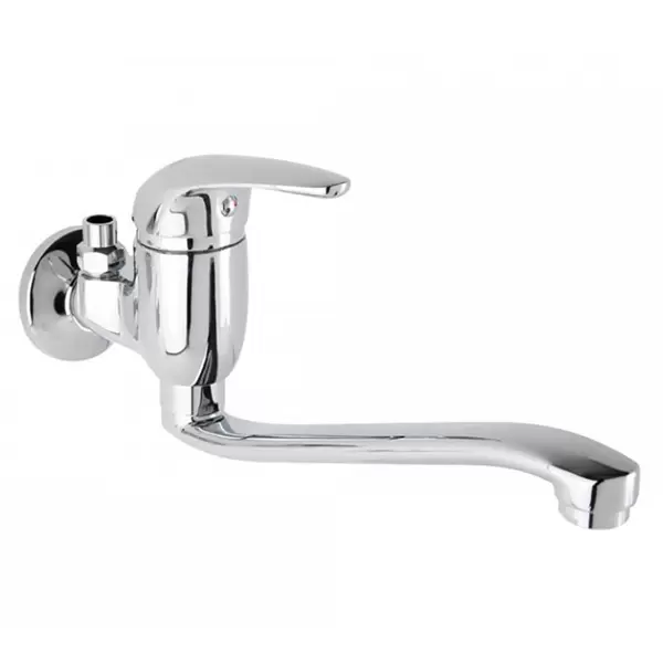 • Ova jednoručna zidna slavina, dizajnirana za horizontalnu instalaciju na jedan otvor, pruža kombinaciju funkcionalnosti i elegantnog dizajna, što je čini savršenim dodatkom za manje kuhinje ili kupatila.