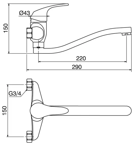 • Naziv proizvoda: Jednoručna baterija za sudoperu - zidna sa dugom lulom EVA Minotti