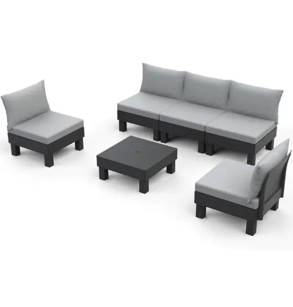 • Sastoji se od pet udobnih sedišta i pratećih jastuka za leđa, pružajući udobnost i podršku tokom opuštanja na otvorenom