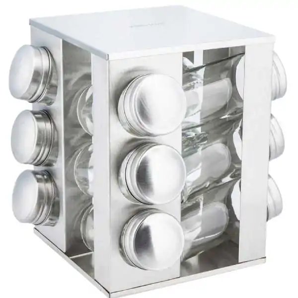 • Set od 12 staklenih posuda sa rotacionim postoljem od nerdjajućeg čelika