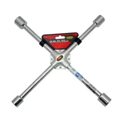 • Ovaj ključ ima četiri različite veličine nasadnih ključeva, odnosno 17 mm, 19 mm, 21 mm i 22 mm, što ga čini pogodnim za različite veličine matica na točkovima.