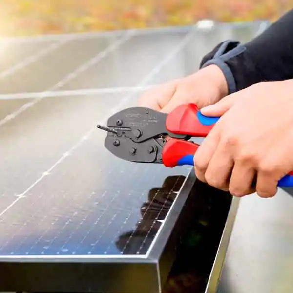 • KNIPEX PreciForce predstavljaju profesionalna klešta za krimpovanje solarnih MC4® i MC4® EVO 2 konektora, namenjena za preciznu i pouzdanu montažu fotonaponskih sistema. Zahvaljujući unapređenoj geometriji krimp spoja, alat omogućava izuzetno dobru vodljivost i sigurnu vezu između solarnih kablova i konektora, što je od ključne važnosti za dugotrajan i stabilan rad solarnih instalacija.