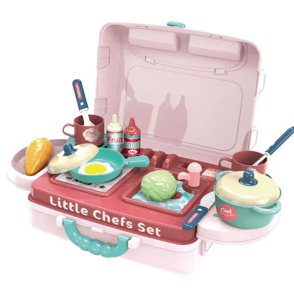 Praktična 3u1 dečja kuhinja koja se brzo rasklapa u prenosivi kovčeg, displej kuhinju ili kuhinju na stalku sa prostranim radnim prostorom. Bogato opremljena, podstiče kreativnu igru, razvija maštu i lako se skladišti. Idealna je za igranje kod kuće, u dvorištu ili tokom putovanja.