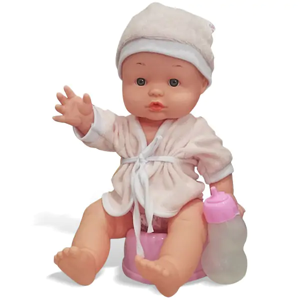 • Lutka beba KIDS LOVE -gumena lutka u odelcetu, koja pije vodu I piški, sa dodatnim setom koji sadrži: flašicu I nošu.