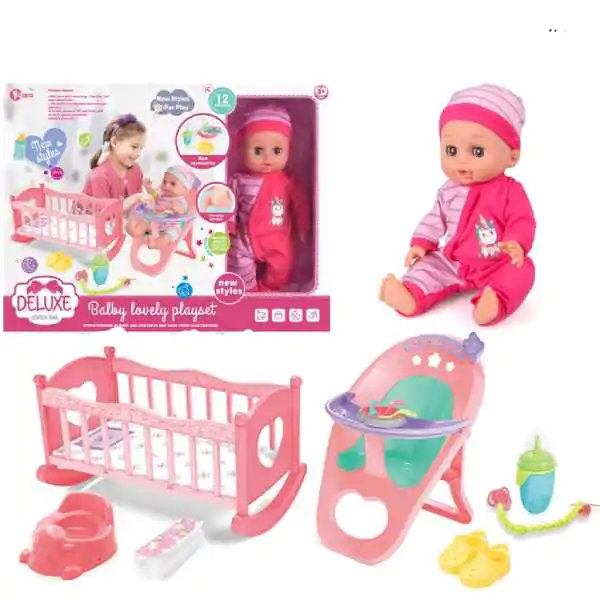 • U setu sa bebom su: krevetac,hranilica i noša sa aksesoarom