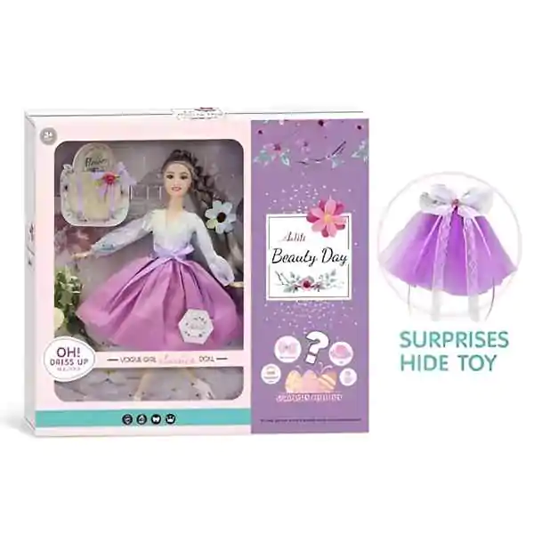 Ova lutka visine 30 cm dolazi sa preslatkom ljubičastom suknjom i torbicom, koja čini igru još zabavnijom i interaktivnijom. U pakovanju se nalazi i specijalna igračka iznenađenja, koja podstiče maštu, kreativnost i igru uloga, omogućavajući devojčicama da osmisle različite scenarije igre i uživaju u satima zabave.