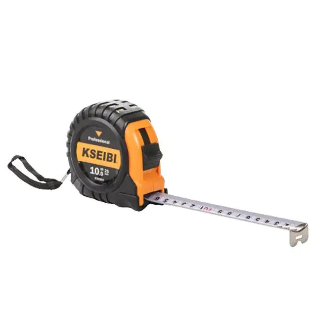 Profesionalni gumirani metar KSEIBI idealan je za brzo i precizno merenje u građevinskim i zanatskim radovima. Kućište je presvučeno gumom i plastikom, dok je traka izrađena od čelika sa belom površinom bez odsjaja radi bolje čitljivosti. Metar dolazi u dužini 10 m × 25 mm, a poseduje i sigurnosnu kukicu za kačenje na zadnjem delu.